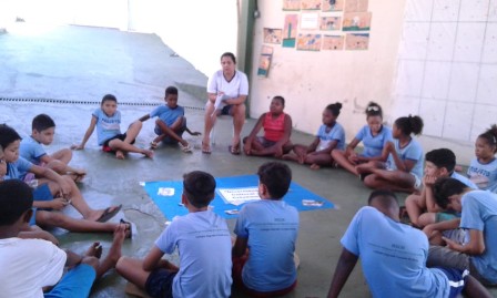Para o encerramento do 1º subtema, as educadoras sociais prepararam uma roda de conversa com as crianças e adolescentes com o objetivo de relembrar os temas trabalhados ao longo do trimestre. Foram colocados, no centro do círculo, as fichas com os assuntos abordados. As crianças e adolescentes deveriam escolher uma ficha e falar o que aprenderam sobre o tema. Os educadores ficaram alegres com as respostas das crianças e adolescentes, pois indicaram que o conteúdo foi aprendido.