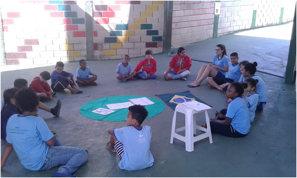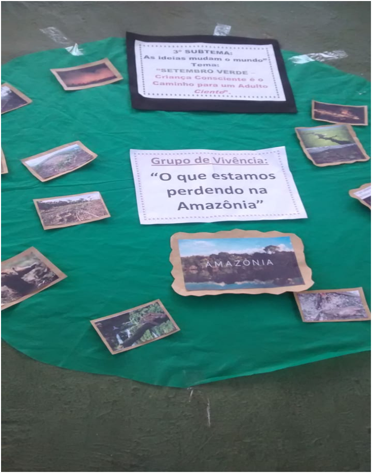 O primeiro assunto trabalhado foi “Floresta Amazônica: o pulmão do mundo”, as educadoras iniciaram a atividade apresentando um vídeo que mostrava a importância e a riqueza da Amazônia; a seguir foi realizada uma roda de conversa sobre o ocorrido na floresta tropical do mundo, instigando nas crianças e nos adolescentes uma reflexão sobre a floresta amazônica antes e depois da destruição; para isso, foram lançadas perguntas, acerca do que, como, o que acontece lá na floresta pode nos prejudicar aqui; e, desta forma, o momento foi muito participativo, trazendo a conversa sobre a flora local, fauna local, espécies em extinção e sobre os maiores interessados no desmatamento.