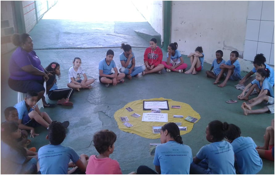 Para contribuir com a reflexão as educadoras mostraram que a fauna da floresta amazônica é riquíssima, pois nela se encontram inúmeras espécies de animais e o desmatamento contribui para a redução dessa biodiversidade, empobrecendo o solo e poluindo os rios. Além disso, falaram sobre outras ameaças sofridas pela floresta amazônica, por meio das atividades agropecuárias, madeireiras, mineração e, ainda, o contrabando de animais. Para finalizar o momento, foi ressaltado que, para que o mundo seja um lugar melhor, devemos pensar não somente em nós, mas em tudo que nos cerca ao nosso redor e as questões trabalhadas durante a roda de conversa são muito sérias e relevantes para nossas vidas, principalmente para a nossa ‘Casa Comum’.