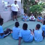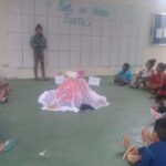 As educadoras Gláucia e Sheila, do Projeto Vida Irmã Maria de Aquino de Ubá/MG, iniciaram o terceiro subtema: “Justiça, nossa maior bandeira” com as crianças e os adolescentes atendidos/as pelo Projeto. Com uma roda de conversa, incentivaram as crianças e os adolescentes a falarem sobre o que seria “Justiça” para eles/elas.