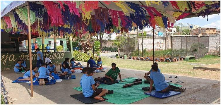 Na Oficina de Convivência l, as atividades foram desenvolvidas por meio de rodas de conversa sobre sustentabilidade; construção de textos; palestras sobre a diferença entre lixão, aterro sanitário e aterro controlado; construção de painéis; limpeza da área externa do Projeto Vida, entre outros.