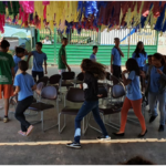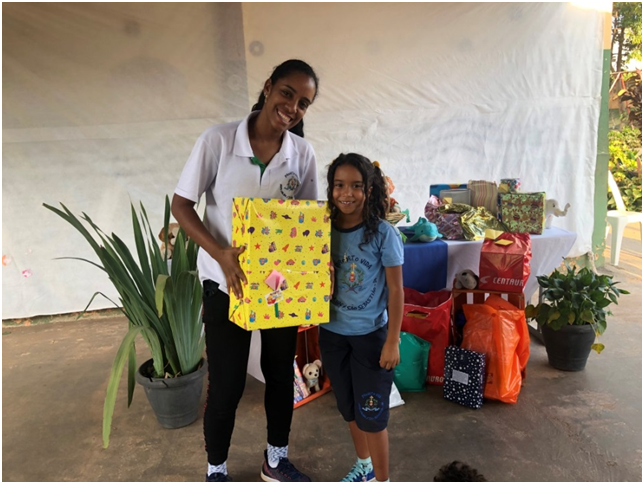Iniciamos as comemorações assistindo o filme “Desafiando Gigantes”, com muita pipoca gourmet, ocasião em que todos refletiram e trouxeram palavras de gratidão sobre o filme. No segundo dia, tivemos o jogo de dominó gigante, dança das cadeiras, muitas comidas gostosas e guloseimas à vontade. Nesse dia, recebemos o administrador de São Sebastião, que veio presentear, em nome da primeira Dama do DF, as nossas crianças e aos adolescentes com brinquedos. Momento de gratidão a todos que puderam fazer nossos(as) meninos(as) felizes com o singelo gesto de amor. Foram entregues nesse dia os presentes doados para eles, que ficaram imensamente felizes por serem lembrados por todos(as).