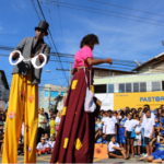 A apresentação que foi feita em cima de pernas de pau, trouxe aos presentes e transeuntes, de forma leve e criativa, orientações importantes sobre o tema. Esta caminhada é um ato público que visa a sensibilizar a comunidade sobre a garantia da proteção integral às crianças e adolescentes. E, no que diz respeito à participação das crianças e adolescentes, pretende estimular o exercício consciente da cidadania e a construção de uma consciência social crítica.