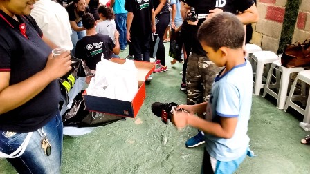 No dia 13 de dezembro, aconteceu um momento especial para as crianças e adolescentes. Foram contemplados com um tênis de presente, oferecido pelas lojas Esporte Legal e Souza Lar. Esse momento foi uma idealização das empresas citadas. Seus colaboradores, receberam a mediação pelo coordenador do SOR, professor Evandro Albuquerque. Ao atingir a meta de vendas da última Black Friday, os colaboradores, ao invés de receberem um bônus financeiro, optaram por realizar doação de um calçado às crianças e adolescentes atendidos por projeto social do município de Ubá. Foi enviado um vídeo sobre o projeto para o proprietário da loja, que fez contato com a coordenadora do projeto e esteve no local acompanhado de um funcionário, que estaria representando os demais. Após essa visita o Projeto Vida Irmã Maria de Aquino foi escolhido para esta ação solidária. Além do presente, as lojas também ofereceram um saboroso café da manhã, com diversos quitutes nessa manhã especial, na sede do Projeto Vida. Em forma de agradecimento, as crianças e adolescentes realizaram apresentações musicais (rap e coral). Peça teatral e entrega a cada colaborador de uma árvore de natal de balas, confeccionadas por eles, durante a oficina de artes e de um cartão personalizado, além de muito carinho, abraços e sorrisos emocionados. Tudo foi registrado pela assessoria de comunicação do colégio e da loja Esporte Legal, em fotos e vídeos disponíveis em suas mídias de comunicação.