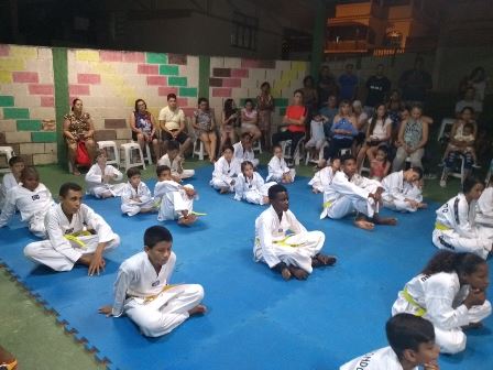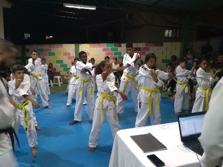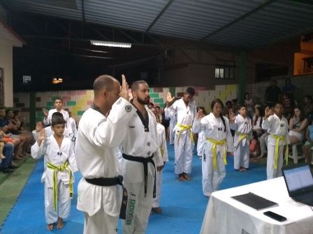 Algumas crianças e adolescentes, que frequentam o Projeto Vida, realizaram o exame de troca de faixa do Taekwondo. O exame aconteceu aqui na sede do Projeto. Teve o envolvimento de outras crianças e adolescentes que participam desta arte marcial em outros espaços do educador Diego Miguetti e do mestre Robson Ceadareanu, que veio de São Paulo para conduzir o exame. A entrega das faixas aconteceu durante uma cerimônia de confraternização, organizada pelo educador Diego Miguetti, no Colégio Sagrado, no dia 18/12 às 17 horas, com a participação das crianças e adolescentes e seus familiar.