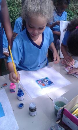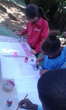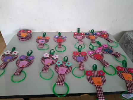 Foi feito com as crianças e os adolescentes, durante a oficina de artes, uma lembrança para presentear a mãe: um suporte para pendurar pano de prato e a pintura de um guardanapo que poderá ser utilizado para tampar bolos e frutas. Durante a oficina as crianças e os adolescentes foram muito criativos, demonstrando capricho e carinho para com aqueles ou aquelas que cuidam de cada um.