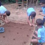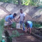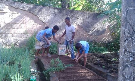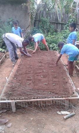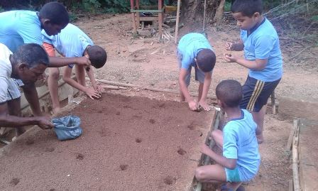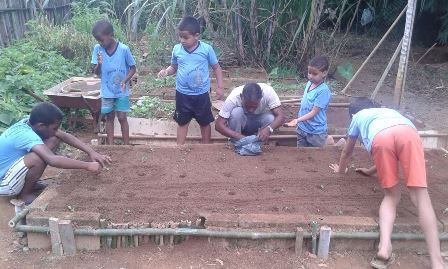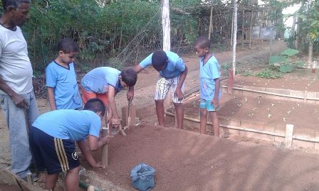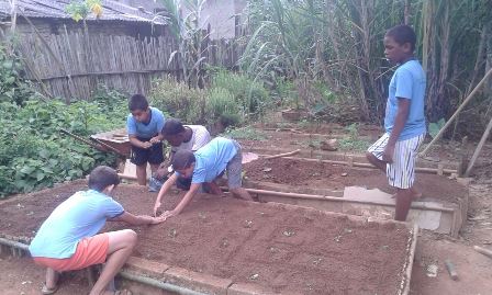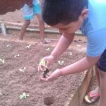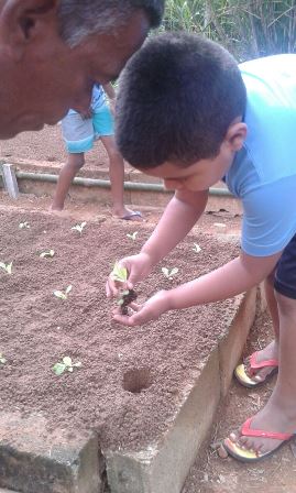 As crianças e adolescentes sobre supervisão e acompanhamento do Sr. Joaquim, realizaram a preparação dos canteiros e o plantio de mudas de verduras e hortaliças, sendo elas: Alface, couve, almeirão, salsa e cebolinha. Realizaram também o plantio de sementes de: Brócolis, cenoura, beterraba e abobrinha.