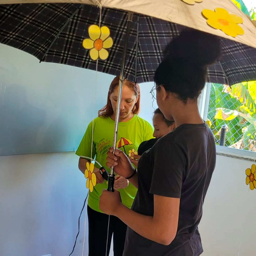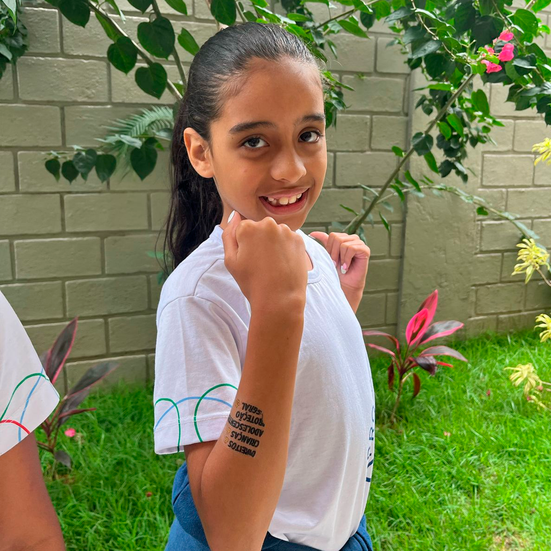 Ao final, cada criança e adolescente recebeu um folheto informativo, reforçando mensagens de proteção, e um adesivo corporal simbólico para lembrar a importância do cuidado contínuo e do autocuidado.