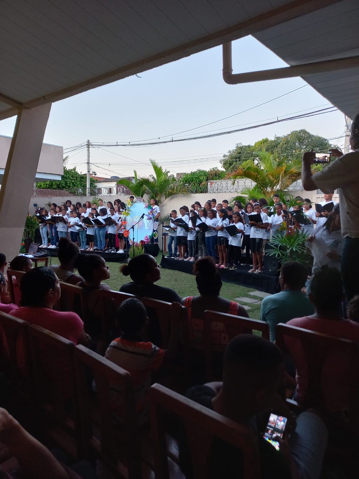 No último dia 27 de outubro, foi realizado um evento no Projeto Vida para o encerramento do projeto “Ode à Natureza”, desenvolvido nos encontros da oficina de música. O espetáculo, de mesmo nome, apresentado às famílias e à comunidade, nasceu do compromisso da instituição em se manter atenta aos desafios do seu tempo, e de refletir, discutir e repensar nossas relações com o outro, com nós mesmos e com o mundo. A Encíclica LAUDATO SI’, de autoria do Papa Francisco, foi o ponto de partida para reflexões e estudos da equipe que escolheu trabalhar com o conceito filosófico da Ecologia Integral.