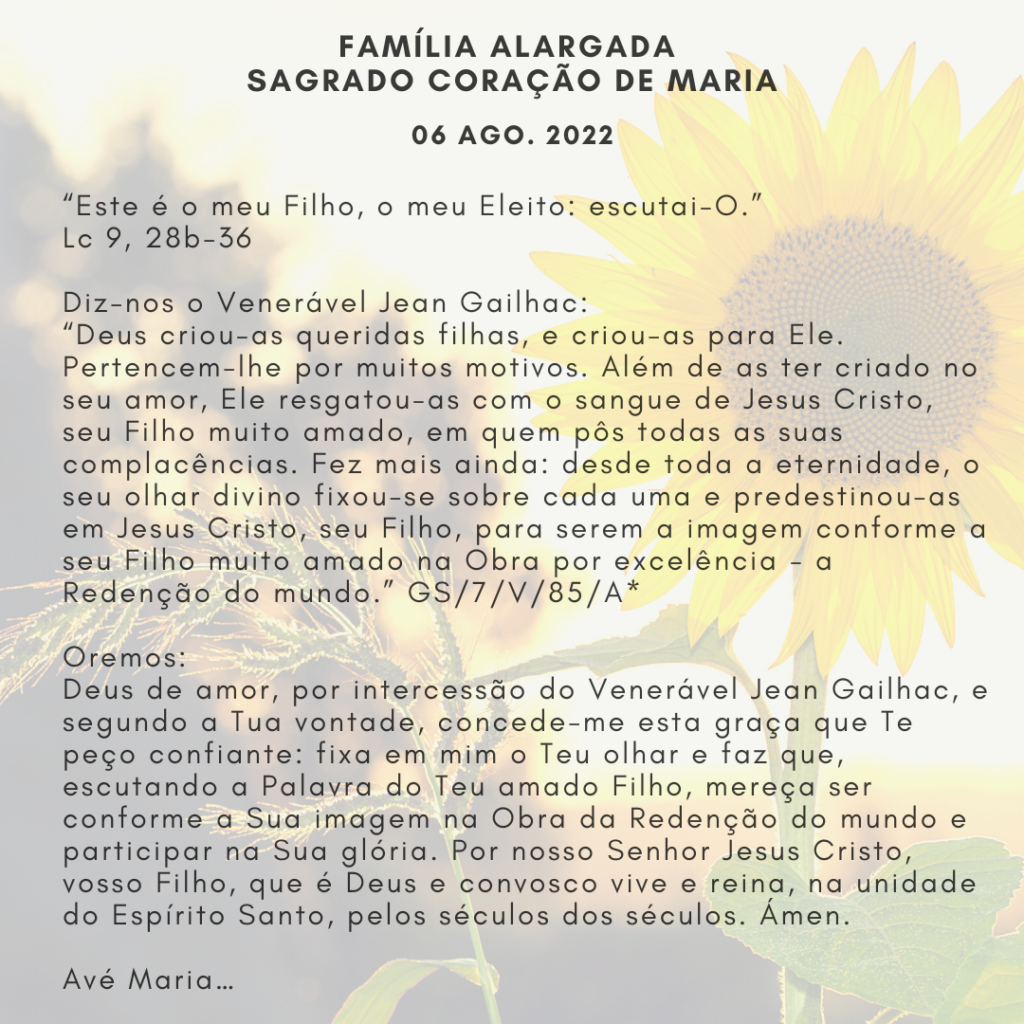 Oração – 6 de Agosto