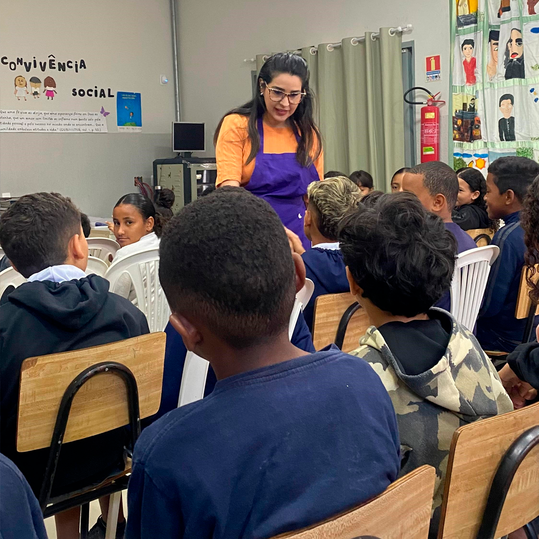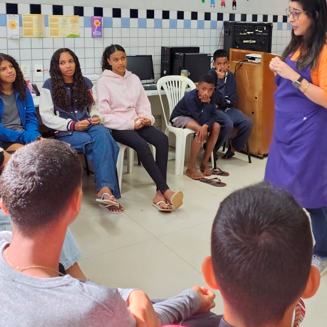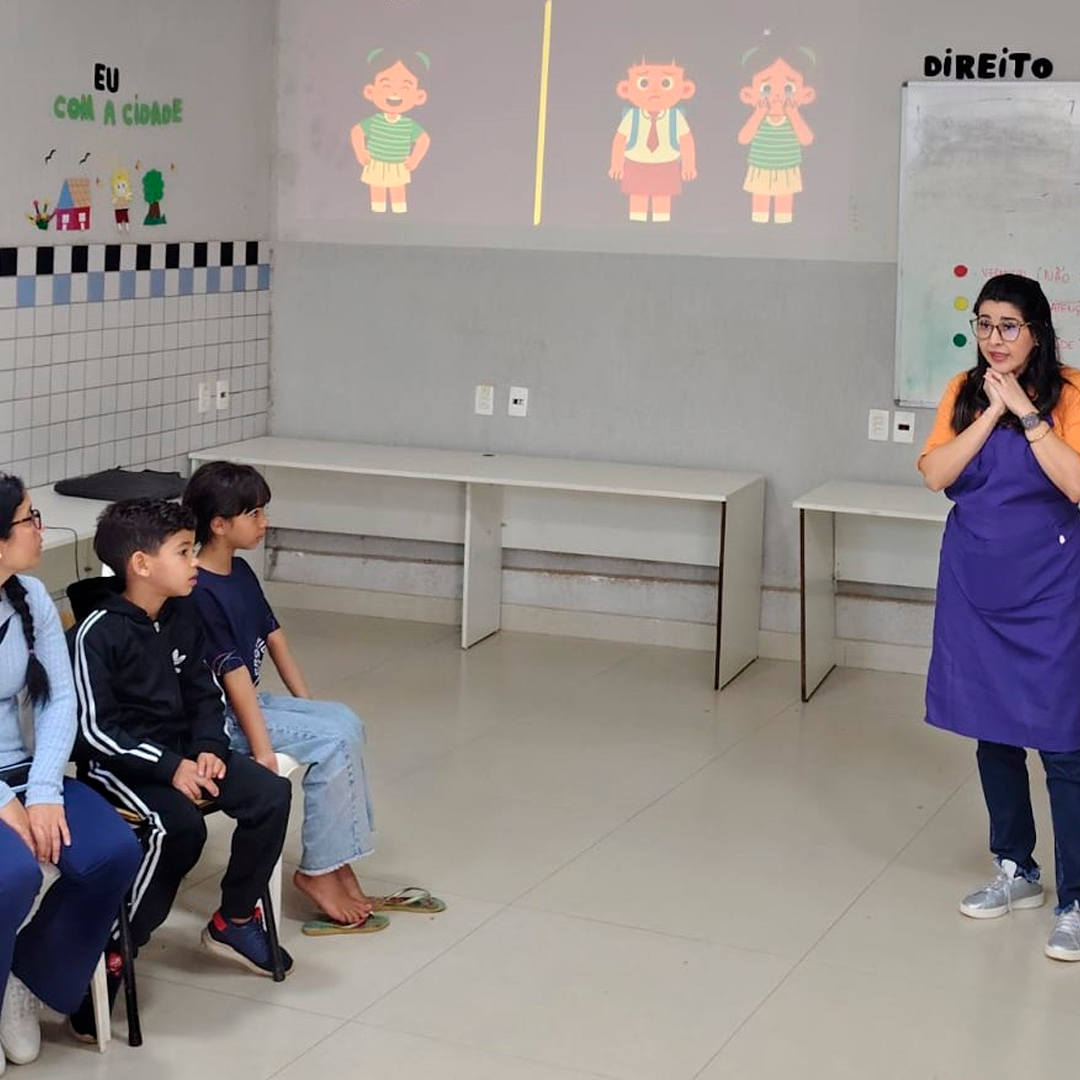 A atividade foi dividida em dois momentos. No primeiro, as crianças participaram de uma abordagem didática e lúdica sobre os cuidados com o corpo. Em seguida, os adolescentes foram envolvidos em uma roda de conversa mais informativa, adaptada à sua realidade, abordando situações que podem expô-los a riscos e formas de prevenção.
