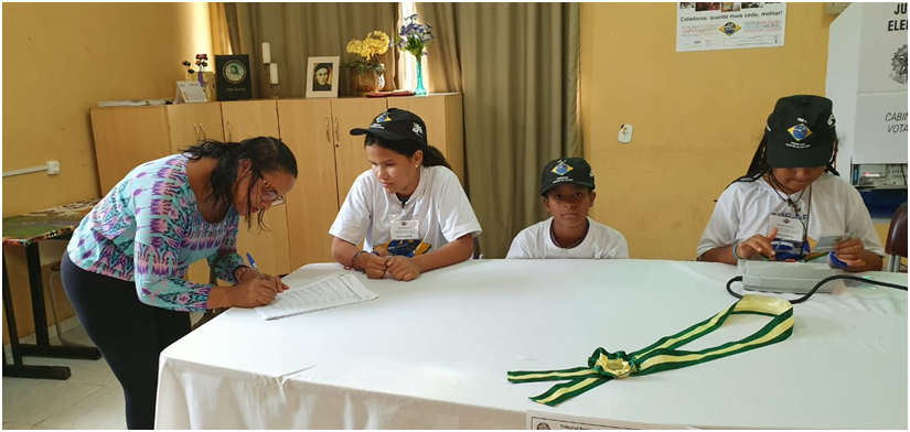 Neste ano, esse projeto teve um diferencial, pois houve participação dos adolescentes, dos familiares e dos colaboradores nas urnas. Por isso, nos dias antecedentes à eleição, aconteceu uma formação para mesários, com a participação de três beneficiadas e um educador social do Projeto Vida no TRE.