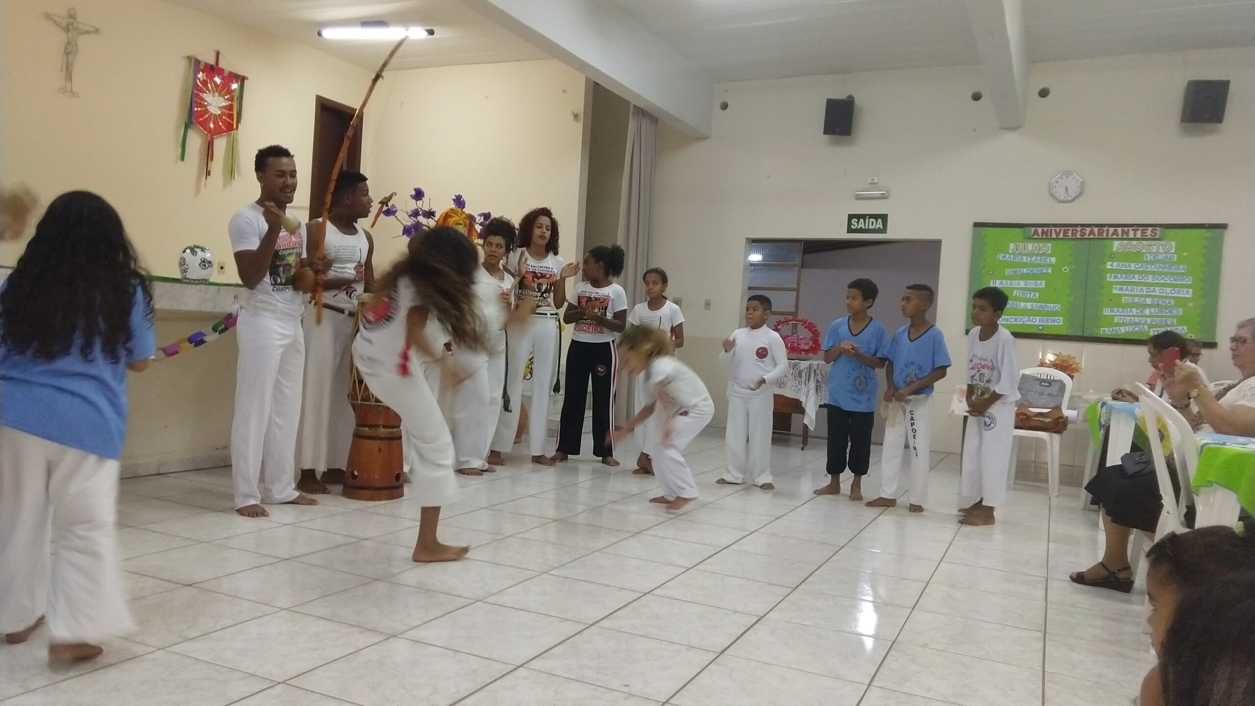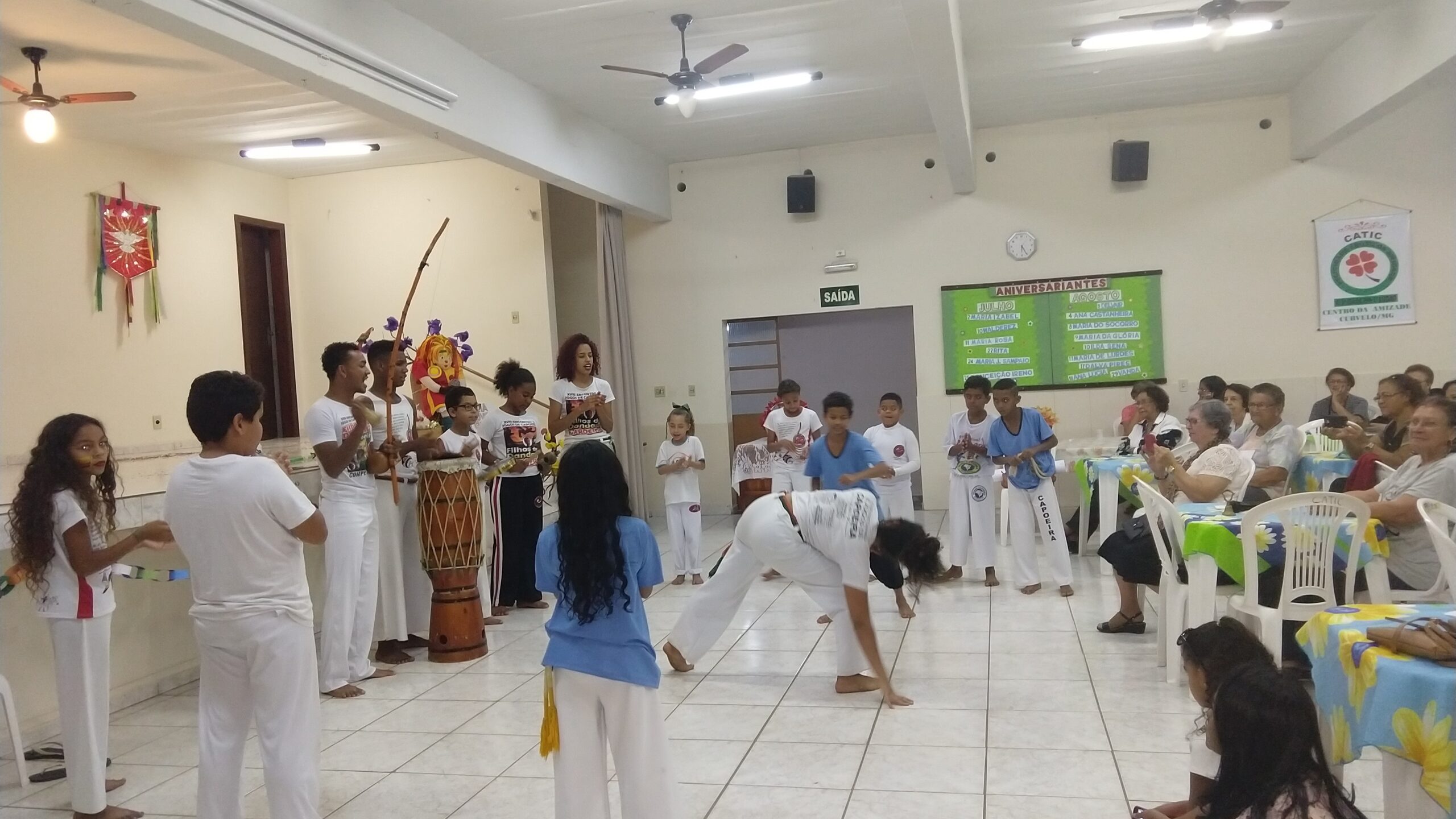 Foi uma tarde muito agradável, em que as crianças, os adolescentes e os idosos, se divertiram muito. Os idosos interagiram com as apresentações, cantaram, aplaudiram, e fizeram várias perguntas sobre a capoeira e a dança apresentada.