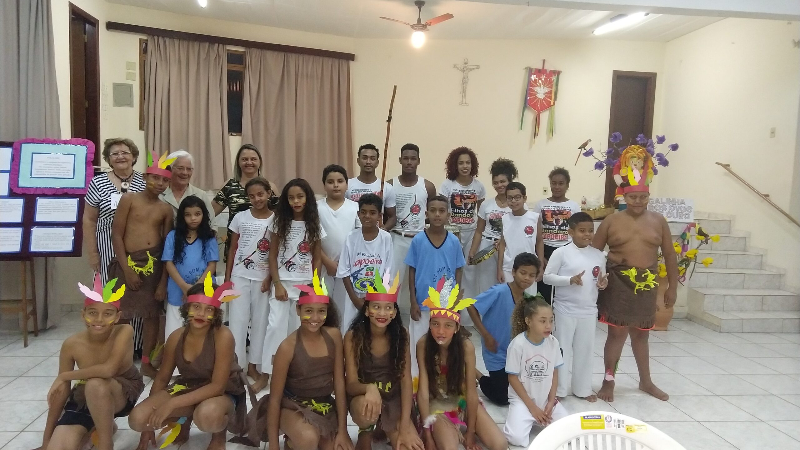 As crianças e adolescentes apresentaram a dança tradicional brasileira “Boi Bumbá”, e, também, fizeram uma roda de capoeira mediada pelo Educador Jhonatan Fernandes.