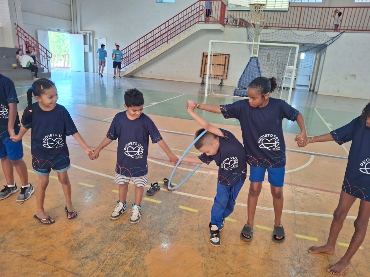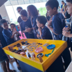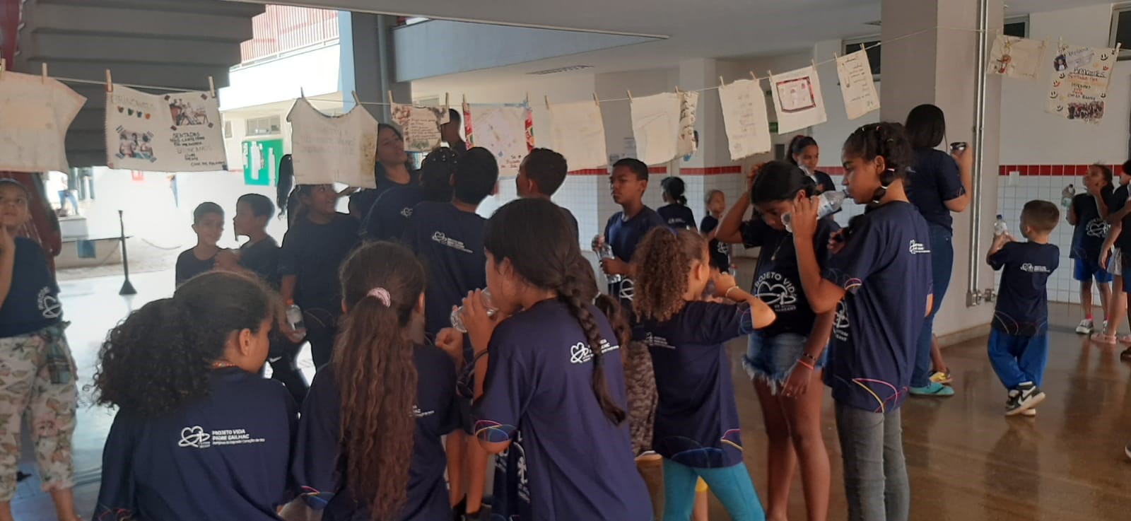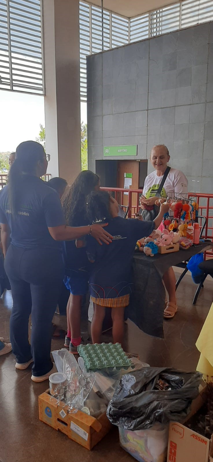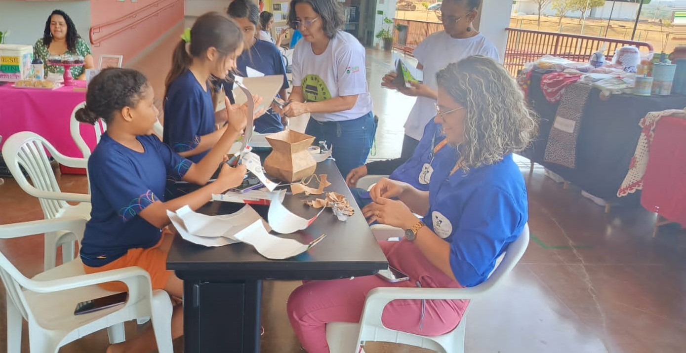 Após conhecer os espaços e apreciar as exposições, os participantes foram divididos em grupos para as atividades. As adolescentes participaram de uma reflexão sobre a dignidade menstrual, apresentada por meio do filme “Homem-absorvente”. Por sua vez, um grupo de crianças trabalhou na construção de artes, com resíduos recicláveis, criando um jarro de papelão. Outro grupo se envolveu em atividades lúdicas, promovendo o trabalho em equipe e o desenvolvimento de habilidades cognitivas, conduzidas pelos alunos do Ensino Médio do IFB.