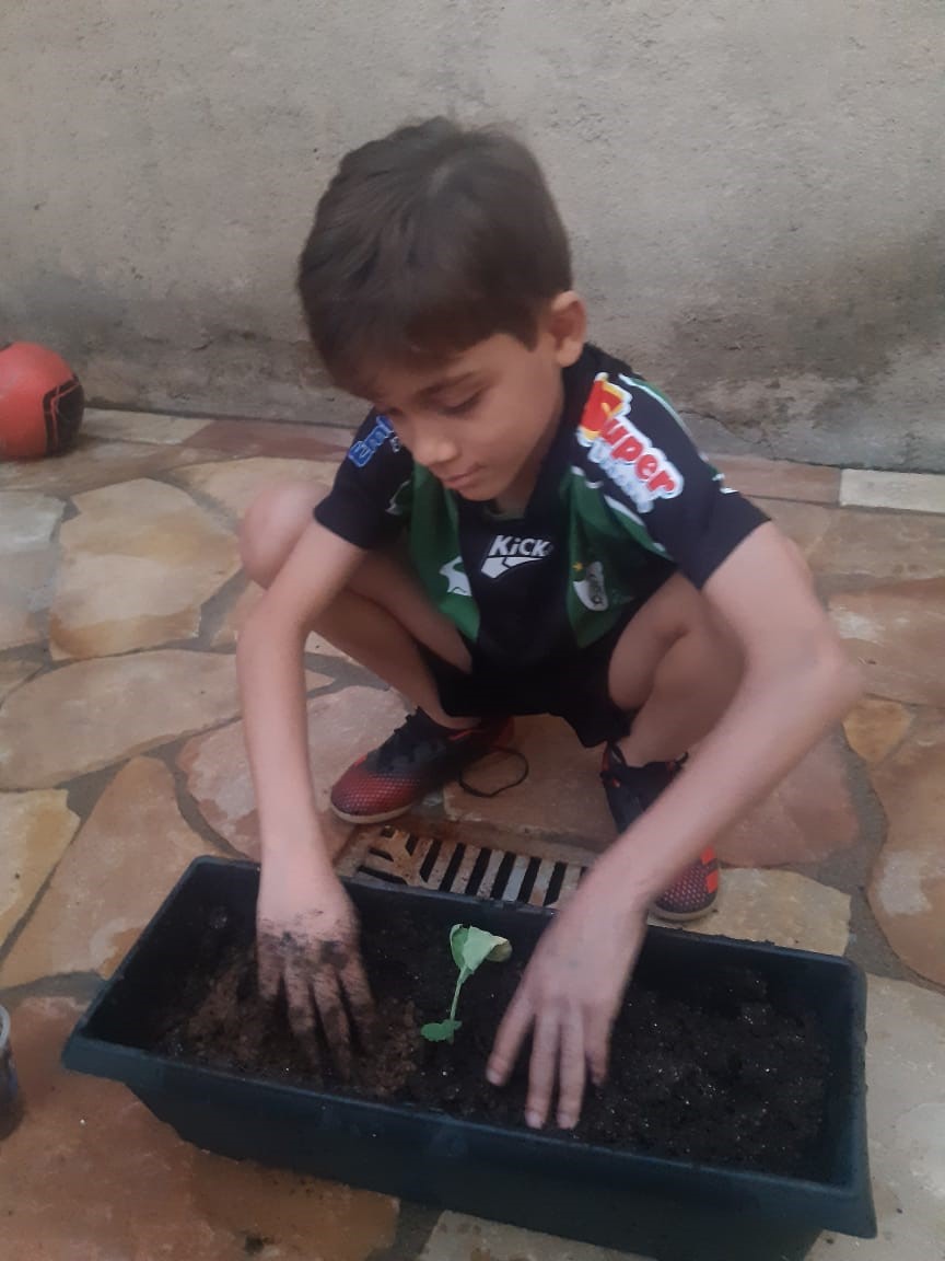 Todas as crianças e os adolescentes receberam uma muda de hortaliça, na qual também tiveram a orientação de que, em casa, deveriam replantar, cuidar e, depois, se alimentar dessa hortaliça. E nós, aqui da Unidade, vamos acompanhar tudo, por meio das fotos que as famílias vão nos encaminhando.