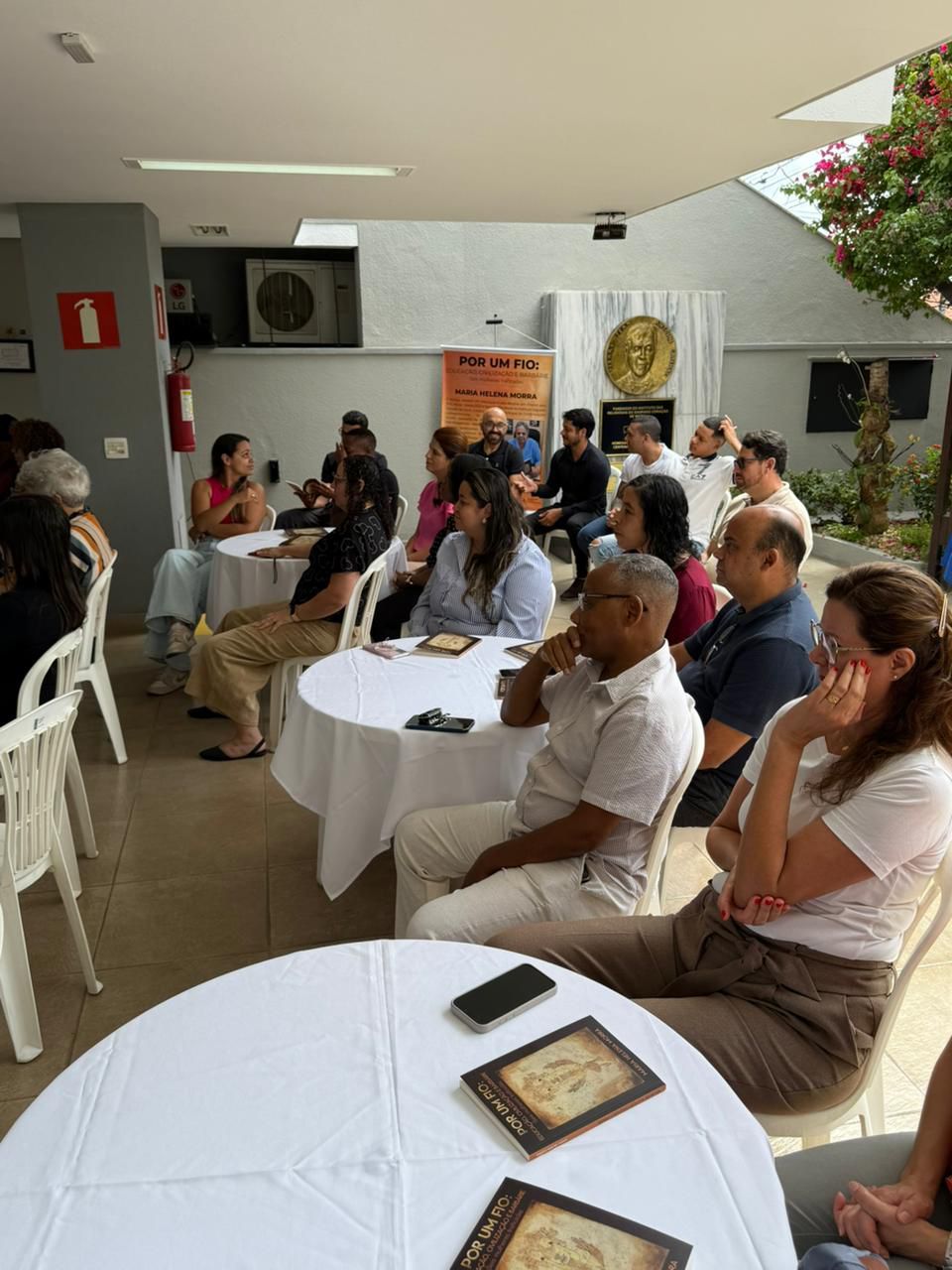 Ao compartilhar aspectos importantes sobre o livro Por um fio: Educação, Civilização e Barbárie – seis mulheres traficadas, a autora convidou o grupo a pensar nas novas formas de barbárie que ocorrem na atualidade e demonstrou o potencial do processo educativo como possibilidade de ruptura e construção de novas realidades por meio da autonomia e emancipação das pessoas.