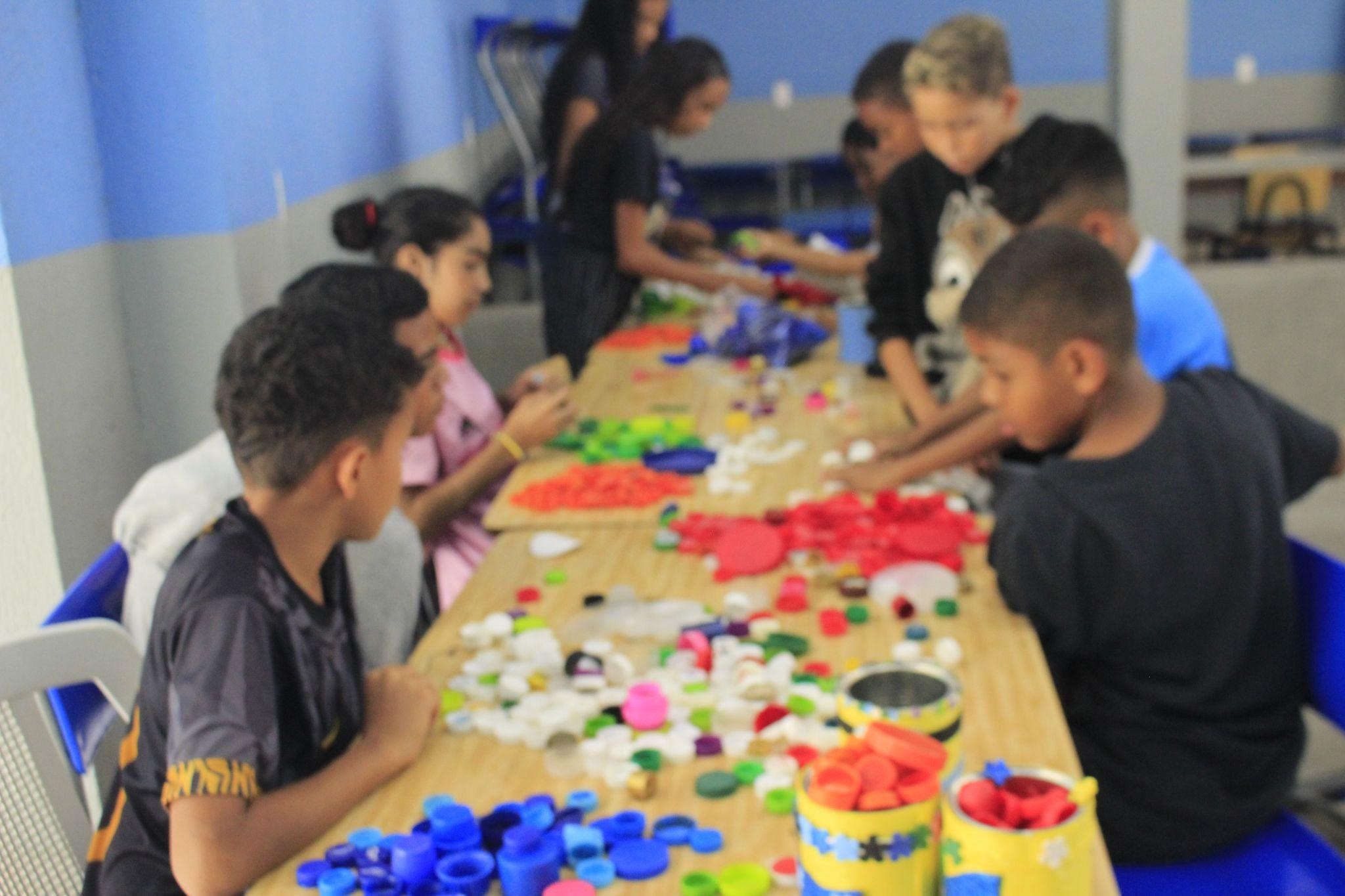 A Rede Sagrado de Brasília desenvolveu uma atividade de reciclagem e contou com a participação das crianças e adolescentes do Projeto Vida, de São Sebastião.