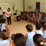 A visita teve como objetivo alertar as crianças sobre cuidado com o mosquito da dengue e como evitar que ele se prolifere e os danos que ele pode causar à nossa saúde.
