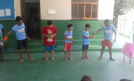 A partir da segunda semana, momento em que as crianças já estavam mais interagidas, os educadores falaram e estabeleceram junto com as crianças e adolescentes as regras da gincana, dando início à gincana de férias, com muitas provas e brincadeiras, buscando sempre despertar nas crianças trabalhos de equipe, raciocínio, respeitar os outros, lidar com ganhos e perdas e se divertirem mutuamente.
