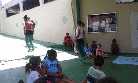 As crianças e adolescentes que frequentam o Projeto Vida tiveram a oportunidade de participarem deste momento, acontecendo uma interação e parceria entre Projeto Vida e Secretaria de Cultura. No final, fomos informados de que momentos como este acontecerão uma vez por mês no Bairro Palmeiras.