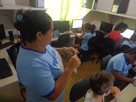 Os educadores deram início à oficina tão esperada pelas crianças e adolescentes. A oficina de informática a partir deste mês acontece nos dois turnos. Os educadores estão apresentando às crianças e adolescentes, novas formas de aprendizagem e conhecimento, através de uso das novas tecnologias da informação.