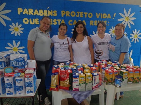 Nesta semana, recebemos a visita de alunos e coordenação do curso de Farmácia, para conhecerem o Projeto Vida e realizarem uma doação de leite, papel higiênico e sabonete; materiais estes arrecadados em eventos realizados pelo curso de Farmácia e doados para o consumo das crianças e adolescentes inseridos no Projeto Vida.