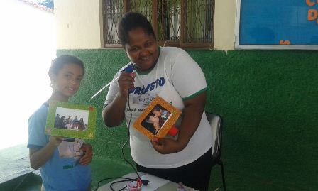 Como homenagem, os educadores pediram às crianças e adolescentes que trouxessem de casa uma foto das mulheres mais importantes de suas vidas, pois juntos com os educadores, confeccionaram um porta-retrato para presenteá-las no encontro que realizaremos com as mulheres, no próximo dia 28 de março.
