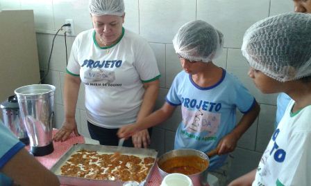 A oficina de culinária está acontecendo semanalmente nos dois turnos, conforme tínhamos planejado.