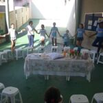No final, as crianças e adolescentes realizaram a organização do espaço e quando a receita estava pronta para o consumo, falaram para as demais crianças e adolescentes, como foi todo o processo, se tiveram alguma dificuldade, etc.