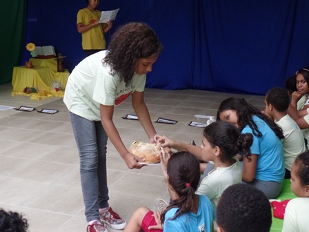 A Páscoa – Passagem foi a base da reflexão realizada na celebração de Páscoa, que aconteceu nos dois turnos no dia 23 de março. O ambiente foi bem ornamentado e simbólico onde foram acontecendo os momentos orantes. Foi feito um resgate histórico sobre a Páscoa apresentada no antigo testamento, com a Páscoa celebrada no novo testamento e um maior entendimento sobre os símbolos presentes nas celebrações atuais e seus significados. Estiveram presentes na celebração as crianças, os adolescentes, os colaboradores e as irmãs da comunidade Nossa Senhora de Guadalupe: Irmã Maria de Lourdes Machado e Irmã Cecilia de Souza Lima. Após a celebração, as crianças e adolescentes receberam chocolate doado por uma das lojas Cacau Show, presente no território.