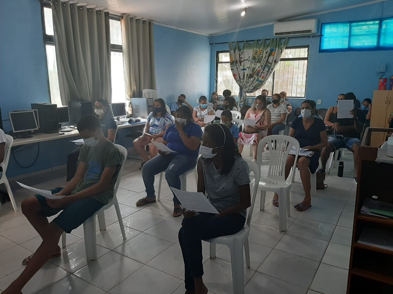 O Projeto Vida realizou no dia 23 de fevereiro a primeira reunião anual de pais, mães e responsáveis. O encontro teve como objetivos: apresentar as Normas de Convivência de 2022; anunciar o tema anual; exibir os dados da Avaliação Anual das Famílias sobre o Serviço Ofertado em 2021 e fazer a entrega de um kit pedagógico para cada beneficiado(a).