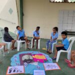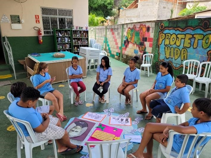 As crianças e os adolescentes citaram exemplos de acontecimentos do cotidiano, como, quando jogam lixo na rua, brigam com os colegas, não cuidam da natureza, refletindo muitas vezes os maus exemplos dos adultos. Falaram também sobre os bons exemplos que aprenderam, como a se alimentarem com legumes e verduras observando os colegas no Projeto Vida. As crianças reproduziram por meio de desenhos o que foi refletido na roda de conversa.
