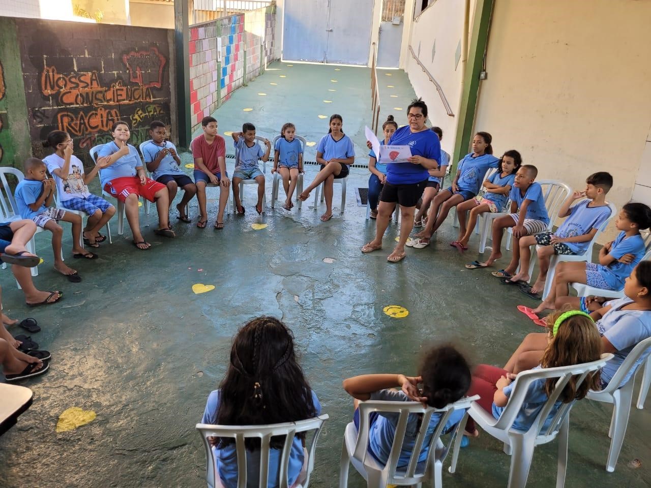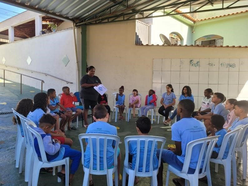 No momento “Laboratório de Aprendizagem”, as educadoras leram o livrinho “E a Chuva” disponível em: (file:///C:/Users/COORDENACAO/Downloads/E%20a%20chuva…%20(2).pdf), para que, crianças e adolescentes entendessem de forma lúdica a situação ocorrida no Rio Grande do Sul.