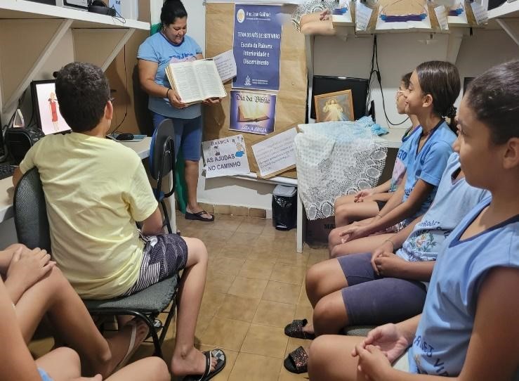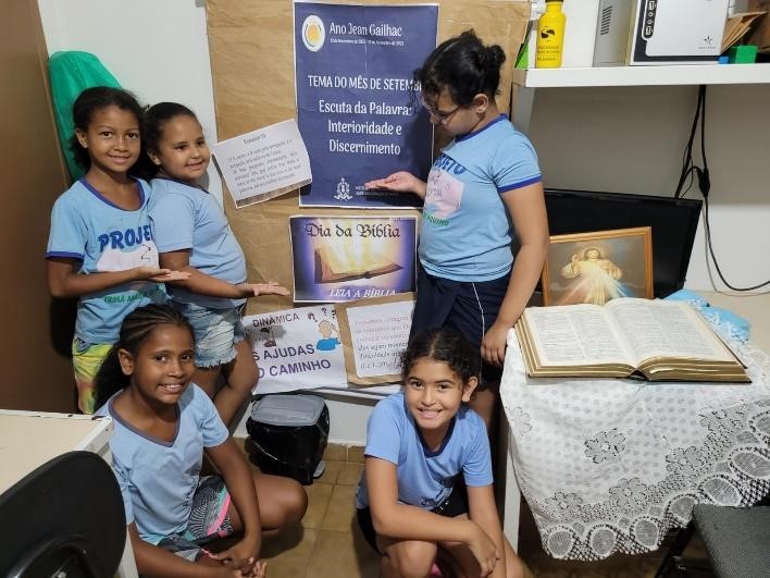 A celebração do Dia da Bíblia foi uma oportunidade de refletir com as crianças e adolescentes, de forma especial, sobre a Palavra de Deus, reflexão que foi ao encontro do tema do mês de setembro do Ano Jean Gailhac: “Escuta da Palavra, Interioridade e Discernimento”, tema que serviu como luz e inspiração.