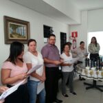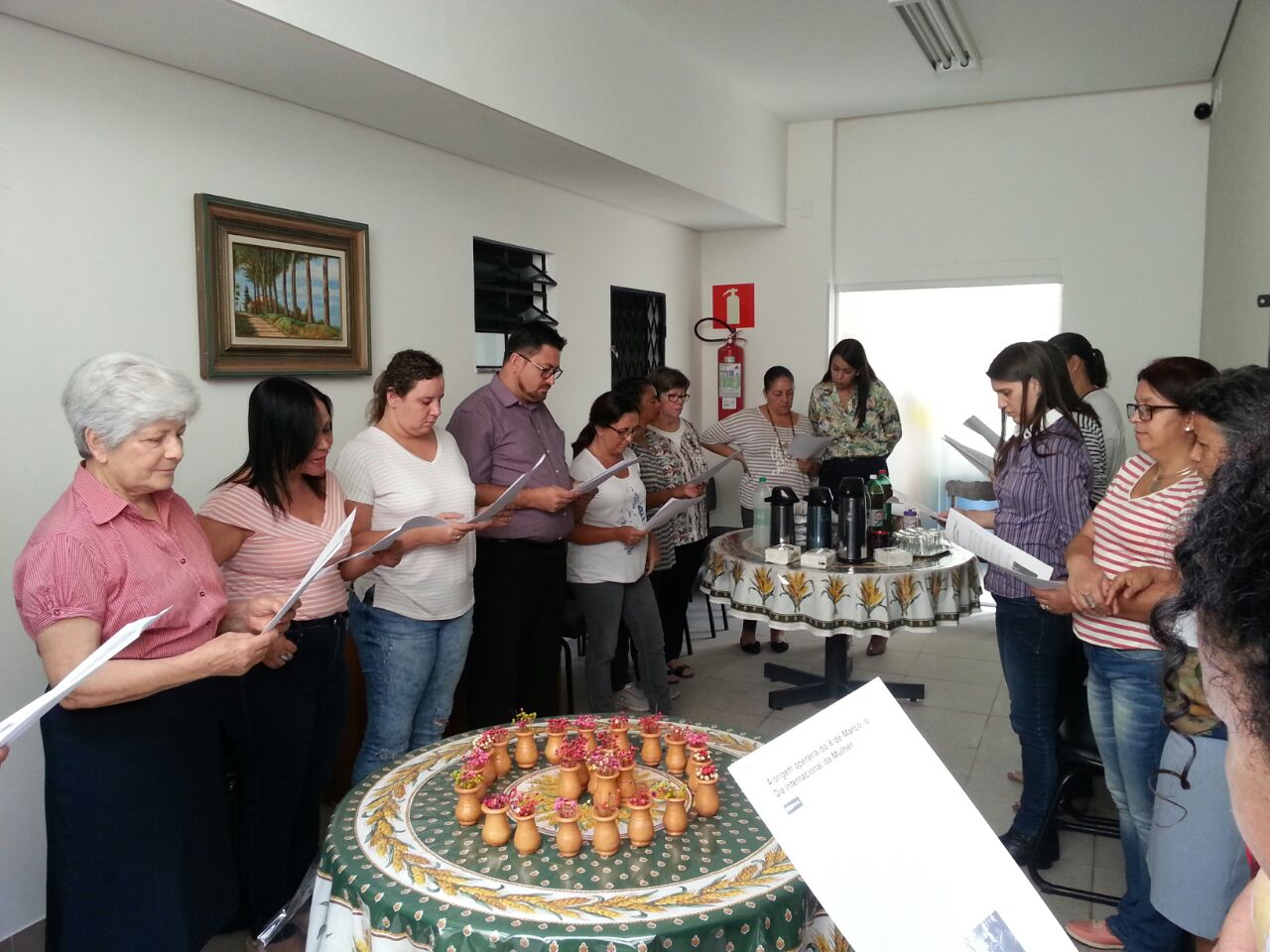 O poema “Mulher, toma o teu cântaro e vai…”, foi lido pelos homens e, em seguida, com a palavra, Ir. Terezinha, Provincial das RSCM, explicou o por que de não cumprimentar com abraços e dar parabéns às colaboradoras, por se tratar de uma data que é um marco da luta das mulheres por direitos.