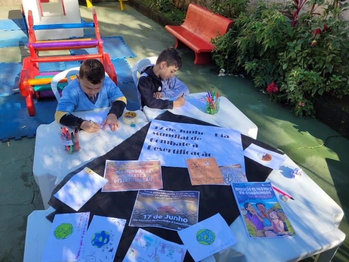 17 de junho é dia de Combater a Desertificação e a Seca. Realizamos uma sensibilização das crianças e dos adolescentes sobre a necessidade de cooperação de todos, conhecemos o processo de desertificação e os efeitos negativos que podem provocar em nossas vidas.