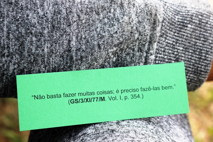 Nos dias 23 e 24 de setembro passado, sexta e sábado, fui agraciado com a participação do Retiro Jovem do CSCM-Brasília. O grupo foi composto por 8 educadores e 37 jovens do 9º Ano e Ensino Médio, sendo quatro deles componentes de uma banda, que assumiu a animação do evento, compartilhando os seus dons. O tema foi Eu Projeto, interpretado tanto como Eu, projeto (autoconstrução) quanto como Eu projeto… (legado para o mundo).