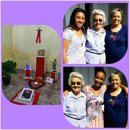 Na nossa capelinha Deus nos fala ao coração.  Nesse dia 24 de fevereiro quando celebrávamos os 168 anos da família do Sagrado Coração de Maria,  nós, aqui em Feira de Santana, celebrávamos também  com muita alegria um ano de pré-noviciado  das duas jovens Daniela e Rhânella que confirmavam com entusiasmo e disposição a sua caminhada nessa família. O salmo 23, que rezamos, nos dizia que o Senhor nos conduz por caminhos nunca vistos; afirmamos que de Béziers para Porto Seguro e Lima Duarte um chamado foi ouvido pelas duas jovens e agora partem para uma experiência na Zâmbia.