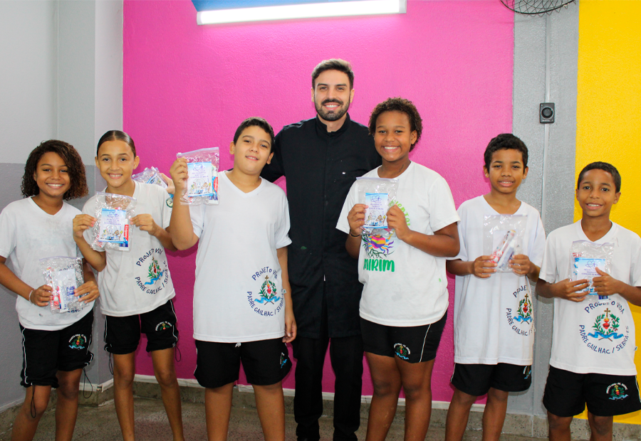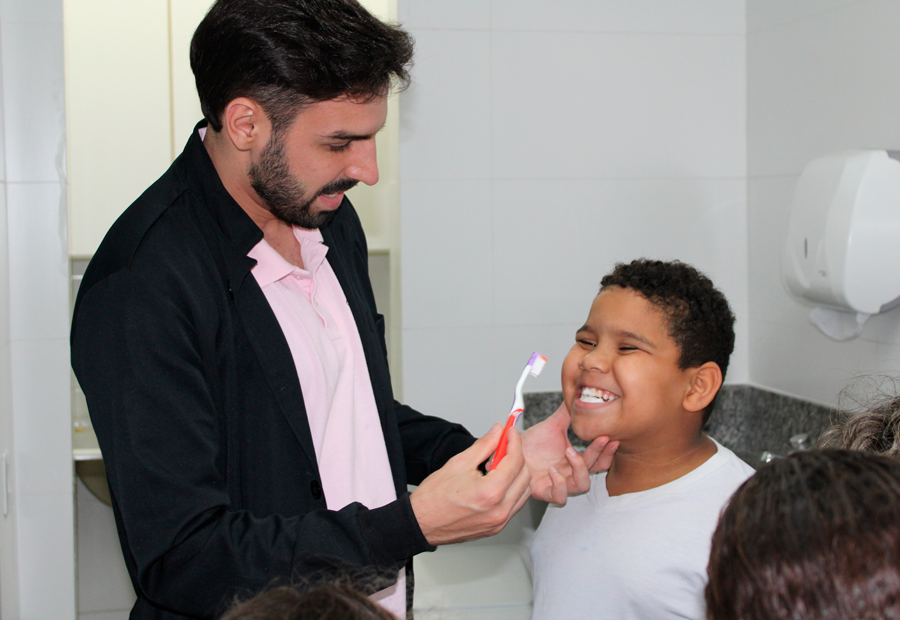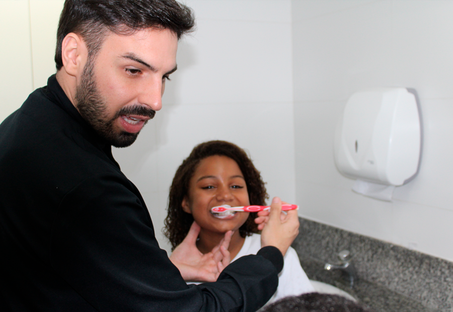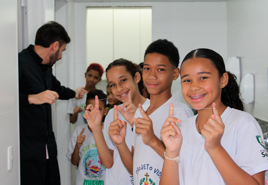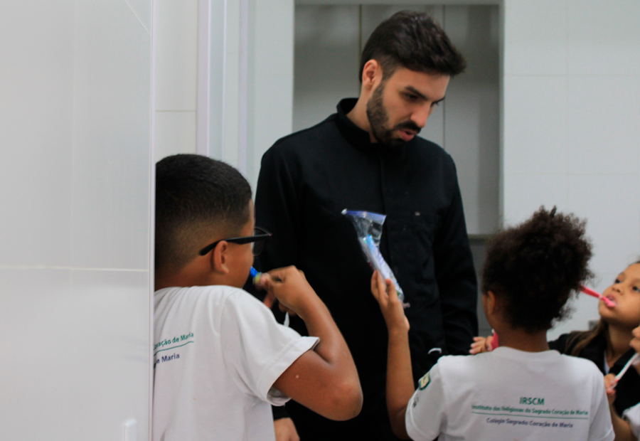 No mês de maio, o Projeto Vida recebeu a visita do dentista Gabriel Morra, profissional do Instituto das Religiosas do Sagrado Coração de Maria (IRSCM), que atua com ações de promoção da saúde bucal em todas as unidades socioassistenciais da rede brasileira. Durante sua visita, Gabriel realizou orientações sobre a escovação correta dos dentes com as crianças e adolescentes, promovendo um momento educativo, leve e de cuidado coletivo com a saúde.