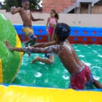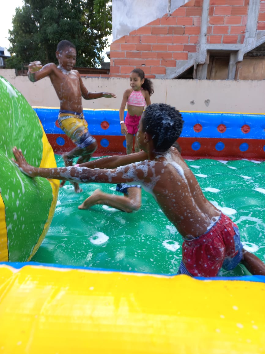 Para comemorar junto às crianças e aos adolescentes atendidos, a Unidade Socioassistencial, da Serra/ES, preparou uma programação bem especial que contou com jogos e gincanas, futebol de sabão, brinquedos infláveis e uma ida ao cinema para assistir um filme de aventura. Além, é claro, de um cardápio diferenciado recheado de guloseimas como hambúrguer, pipoca e algodão doce.