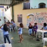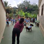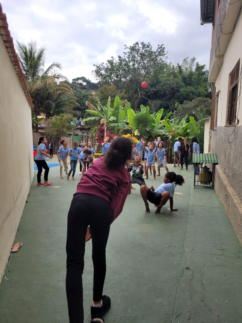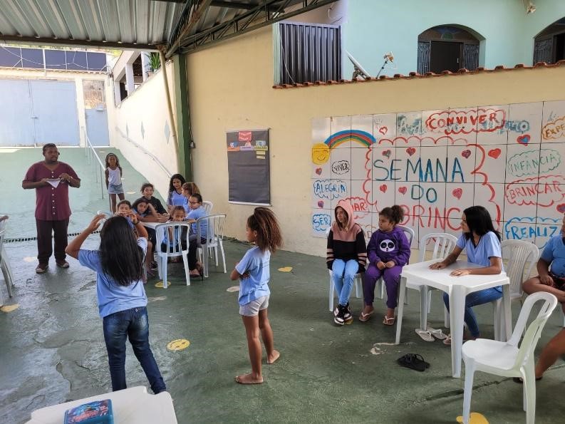 Aconteceram momentos muito divertidos, com competição musical, durante a oficina de dança, quiz, brincadeiras livres no parquinho e pátio, adedanha, jogos virtuais e muito mais! Como culminância, as crianças e adolescentes foram levados pela oficineira de esporte e educadoras sociais à pracinha do bairro – Altair Rocha, próximo de onde está localizado o Projeto Vida, para que brincassem e se divertissem em um espaço público aberto e em meio a uma área verde, indo de encontro à temática do ano da Semana Mundial do Brincar 2023: “Estimulando a natureza no brincar”, mostrando para a população o quanto o direito de brincar é saudável e necessário.