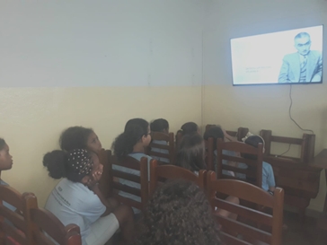 Tivemos ainda o momento audiovisual, onde visitaram o Museu Monteiro Lobato através do YouTube. Todos adoraram conhecer o Sítio do Pica-Pau Amarelo e seus personagens, bem como sua história.