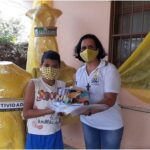 Cada balão continha algumas perguntas e cada criança e adolescente, junto com a família, tinha que encher o balão, estourar, ler as perguntas e responder.