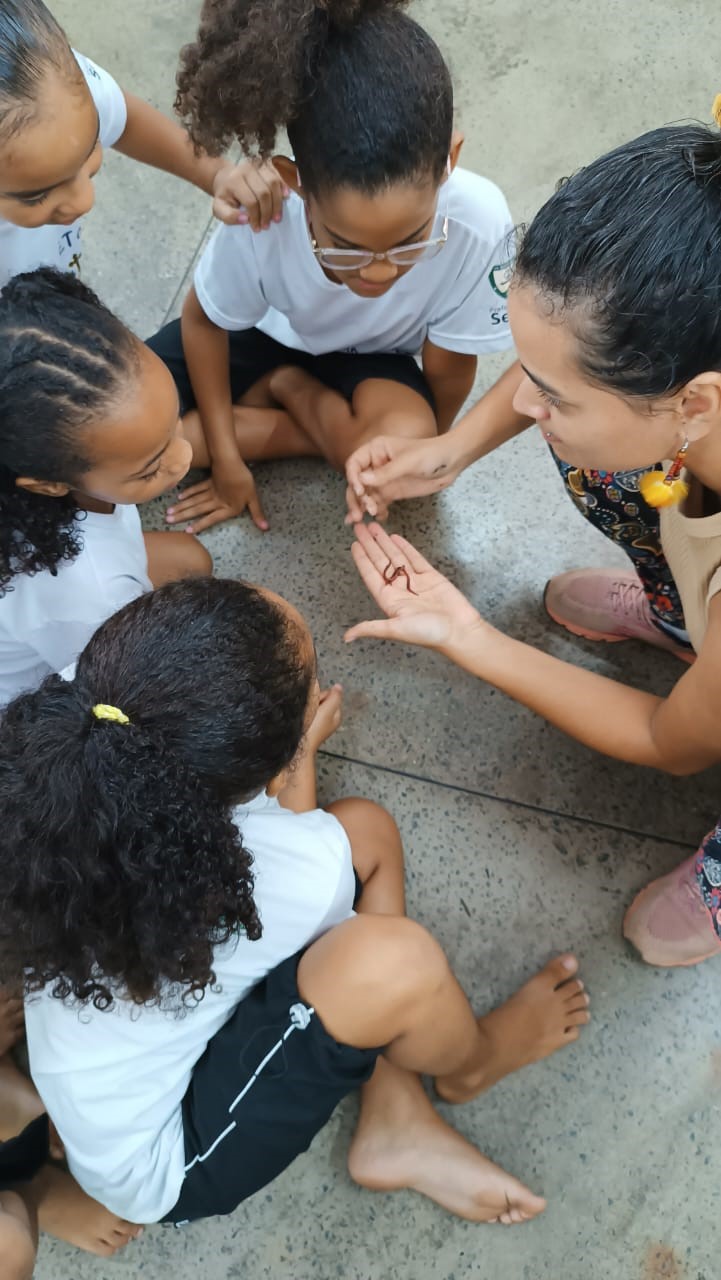 Por meio da utilização de uma composteira transparente, será possível aprendermos sobre o processo de compostagem, observando e acompanhando os ciclos de decomposição dos resíduos orgânicos. O primeiro contato com a composteira, e principalmente com os trabalhadores que auxiliarão neste processo, insetos e minhocas, gerou muita curiosidade.