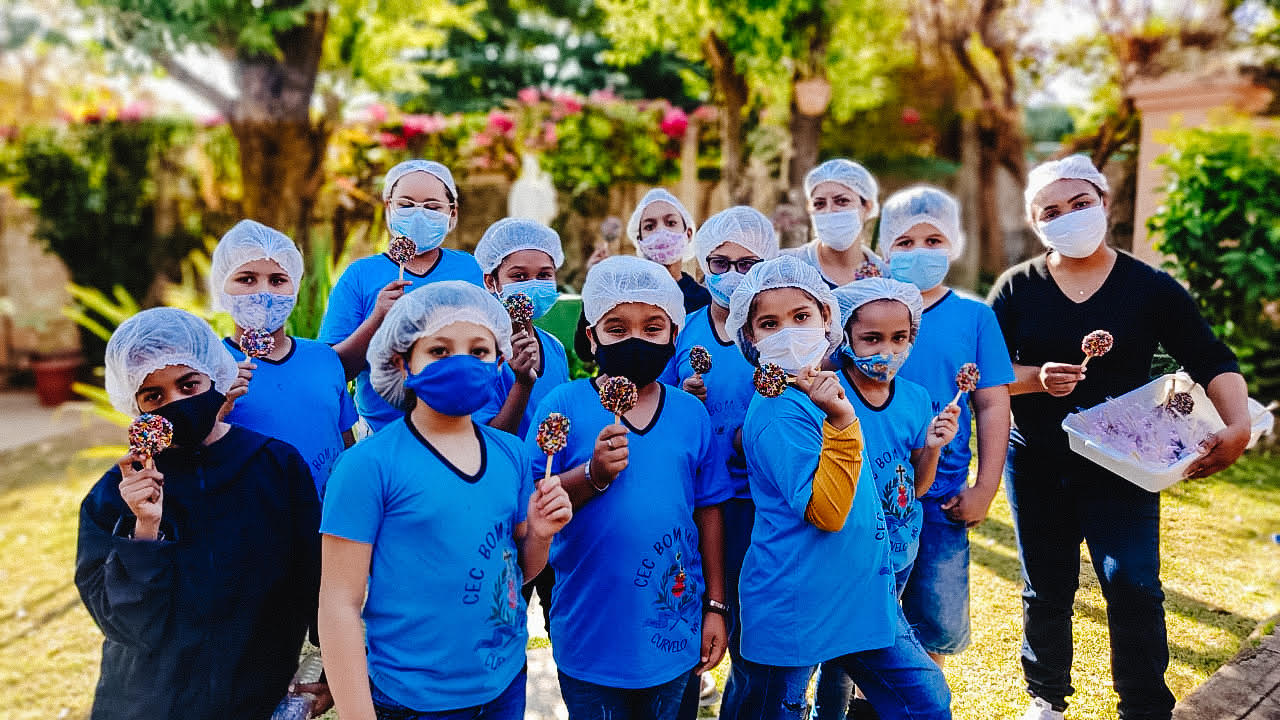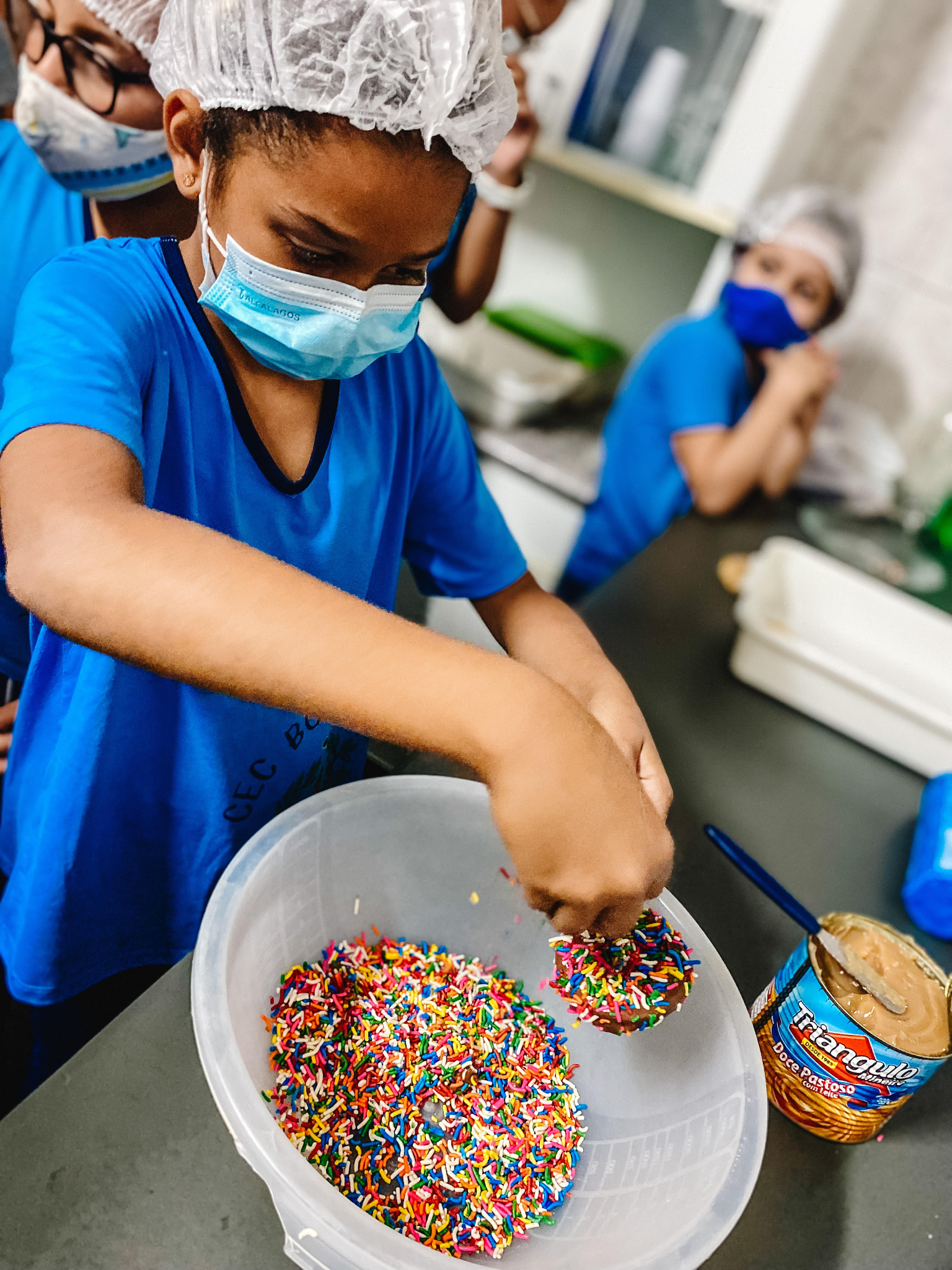 No dia 13 de julho, as crianças do Grupo Aquarela, seguindo todos os cuidados necessários, durante a oficina “Tem Criança na Cozinha”, colocaram a mão na massa, desenvolvendo uma receita pra lá de especial, divertida e colorida, onde eles mesmos realizaram a maior parte de toda a receita do Pirulito Aquarela.