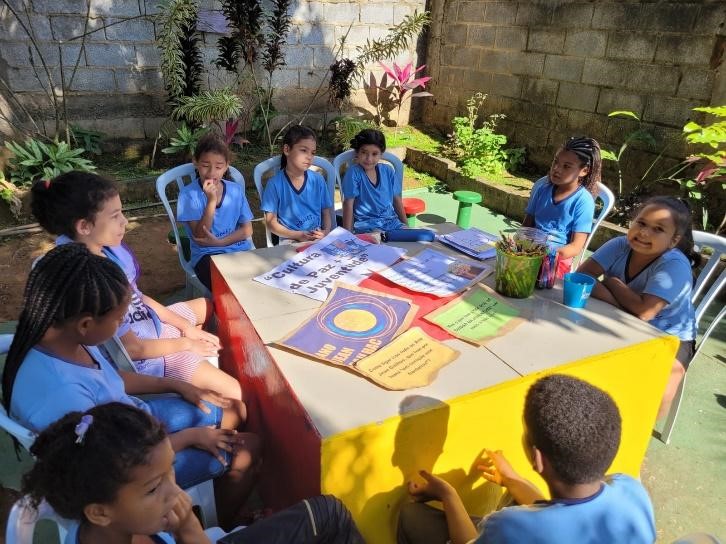 A educadora trouxe para a roda de conversa os seis pilares da cultura de paz, que vão de encontro com a temática. Após as crianças e adolescentes conhecerem e expressarem sobre cada um dos pilares, concluímos que, quando falamos em “cultura da paz”, nos referimos a num todo; e não significa momentos de paz, e sim a paz em todas as situações, sendo a paz um conjunto de princípios, valores, conhecimentos e procedimentos pacíficos no mudo ao qual pertencemos.