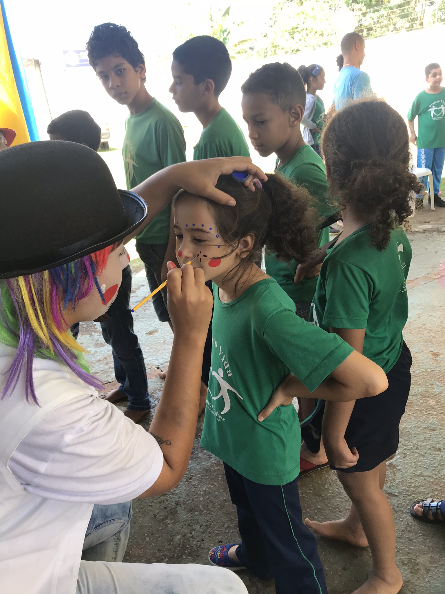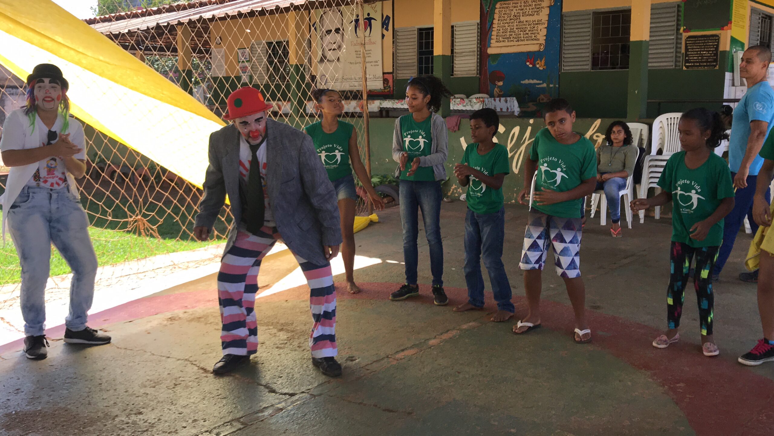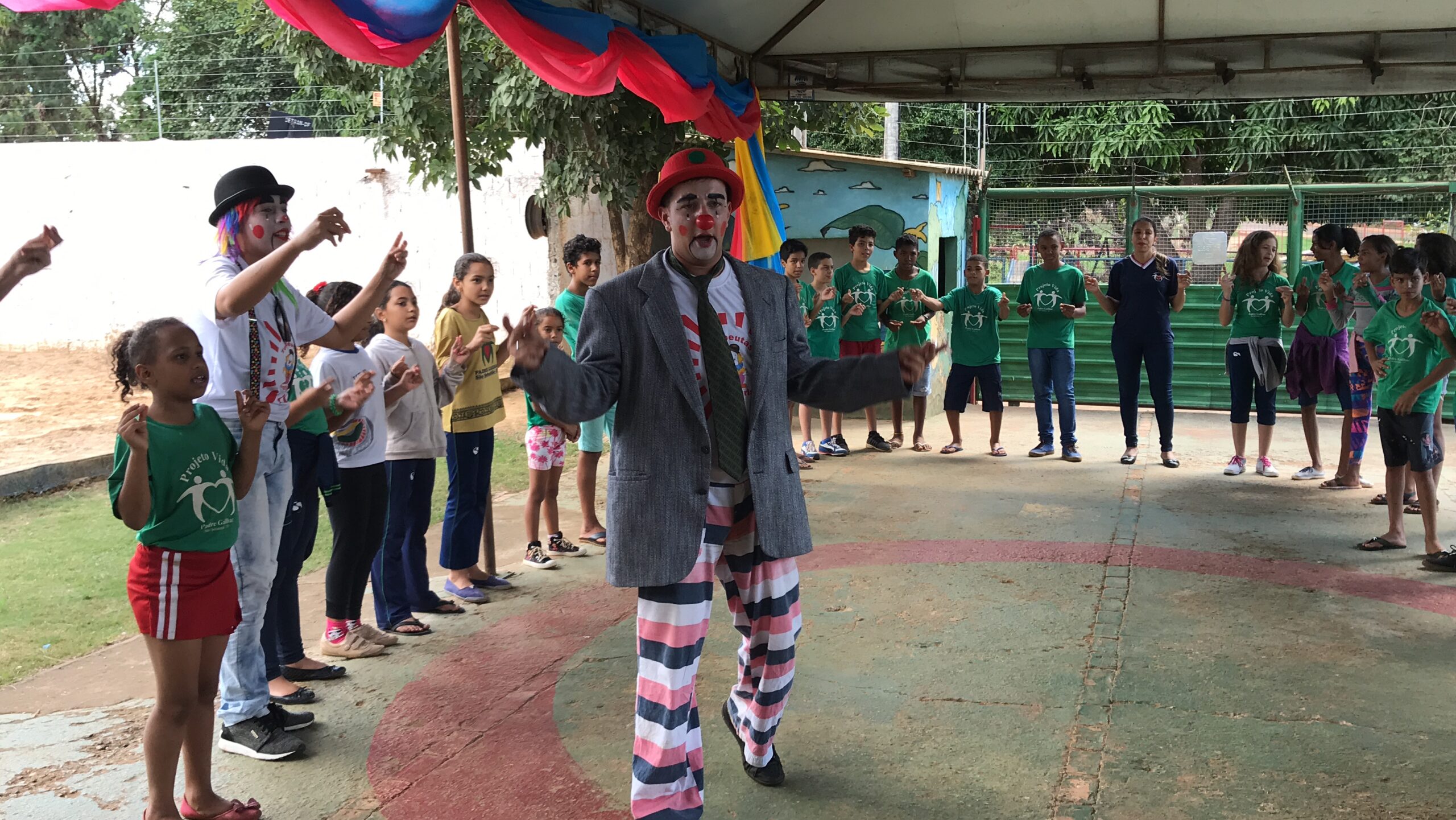 Alegria! Alegria! Foi o que os terapeutas da alegria trouxeram para as crianças e adolescentes do projeto.