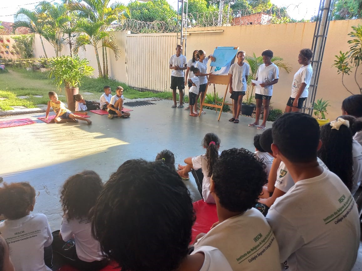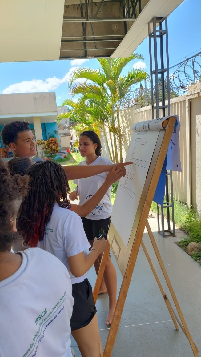 Os adolescentes do Projeto Vida prepararam um momento de acolhida, direcionado aos demais colegas, com o objetivo de conscientizá-los sobre uma problemática muito importante e diretamente relacionada com a saúde de todos: o combate à Dengue.