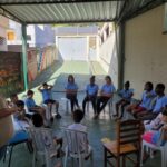 Para o turno da manhã, tivemos a visita de um Agente de Saúde, da Estratégia da Saúde da Família – ESF do Bairro Palmeiras -, com orientações e cuidados importantes para se evitar as doenças, compreender a necessidade de cuidados específicos e a importância de procurar atendimento médico em casos de surgimento de, no mínimo, dois sintomas da doença. A partir do conhecimento obtido e dos panfletos disponibilizados pela ESF, as educadoras saíram com grupos pelo território para observar e, se possível, recolher objetos que pudessem servir de criadouro para o mosquito. As crianças e adolescentes saíram em campanha contra o inseto, panfletando e repassando o que aprenderam para a Comunidade.
